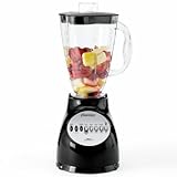 This Oster blender with 10-speeds performs every time. Ideal for smoothies and frozen drinks. Oster Blender: exclusive All-Metal-Drive for extra durability stainless steel ice crusher blade for perfectly crushed ice every time powerful motor for grating, blending, grinding and liquefying 6-cup break-resistant jar Painted metal base with plastic jar. 450W. Imported. Available in colors: Black.